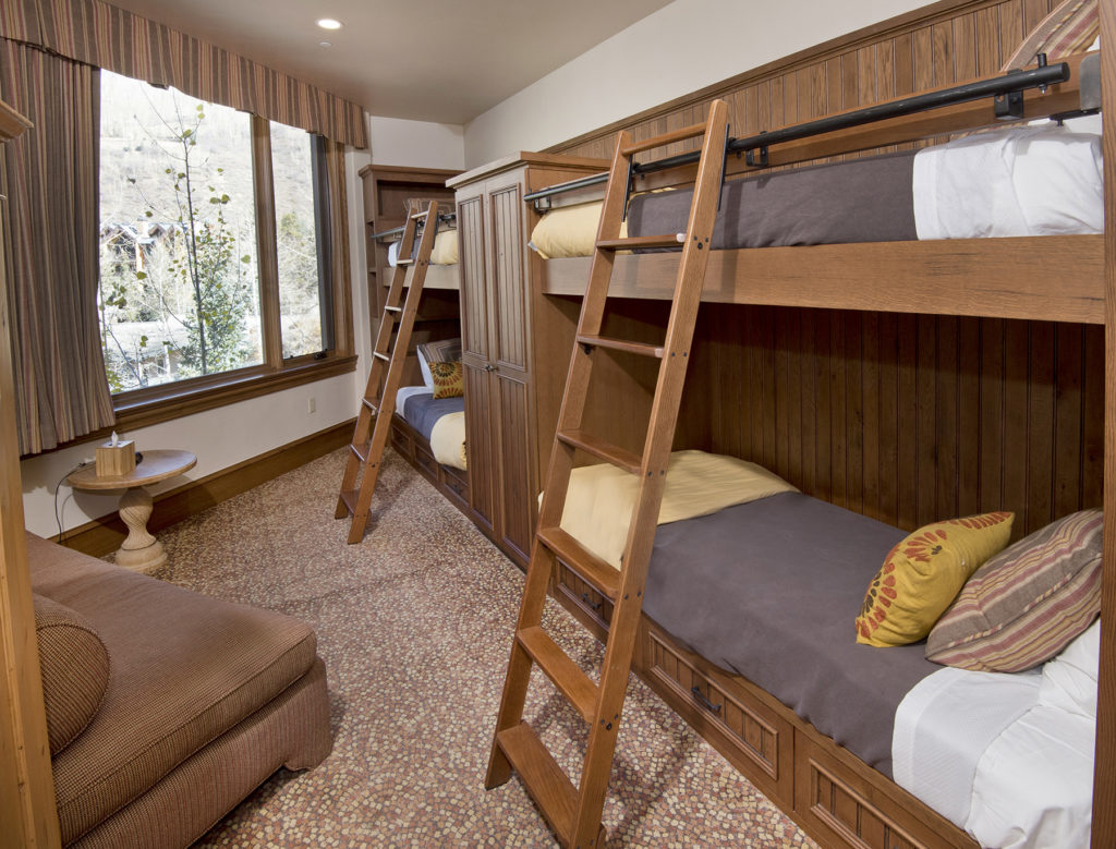 A comfortable three bedroom (King, King, two sets of extra long, twin, built in bunk beds), three and a half bath, fireplace, full kitchen, deck, grill and mountain view. Sleeps 8 people.